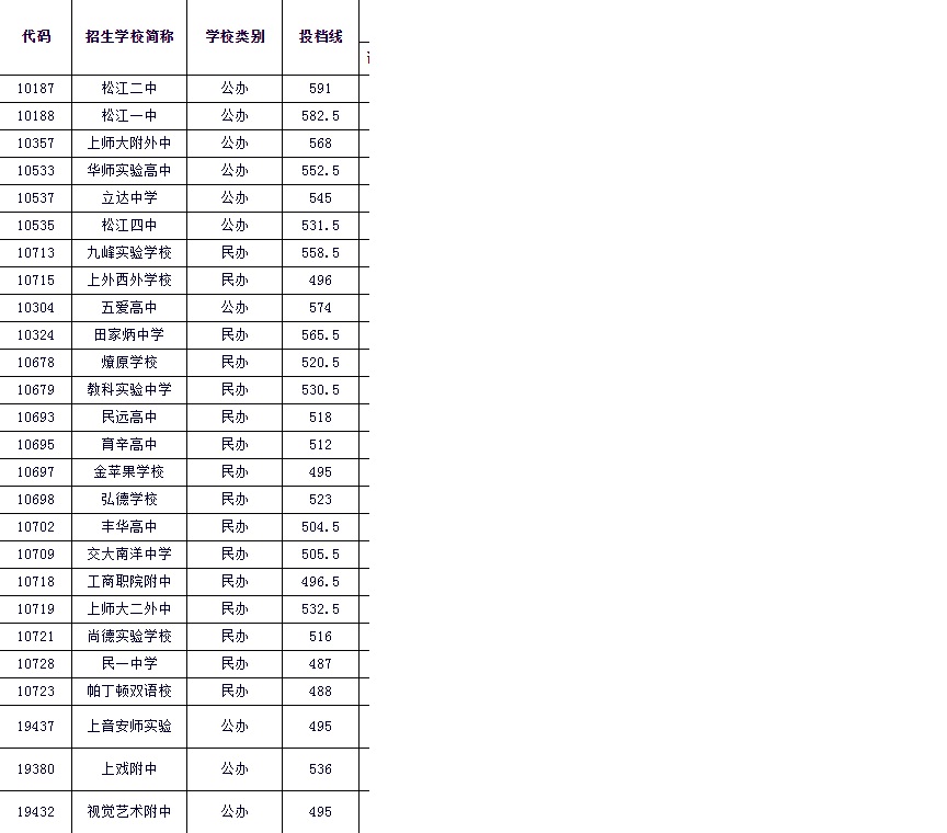 2018年上海市民办高中最低投档..